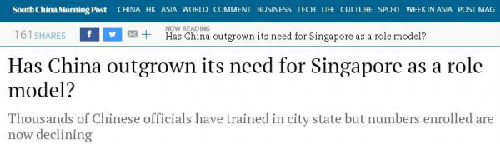 一条是香港《南华早报》24日的分析报道:“中国已经发展到不再需要新加坡做榜样了吗?”