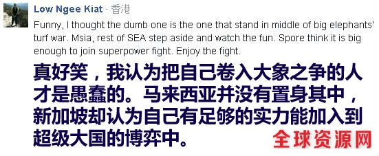 对于“中国为什么选择马来西亚,而非新加坡”的疑问,有新加坡网友这样回答:“因为新加坡太聪明了,中国无法应付。”
