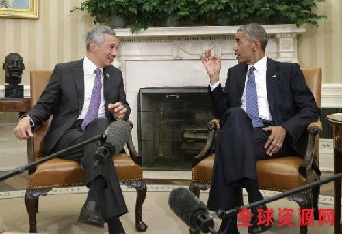 2016年8月,新加坡总理李显龙访美,与奥巴马在白宫办公室交谈。