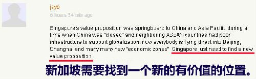 网友“jayb”评论道:新加坡真正的价值,在于当中国还处于“封闭”状态时,扮演中国通向亚太的“跳板”。然而如今,全世界的人都会直飞北京、上海。新加坡需要找到一个新的有价值的位置。