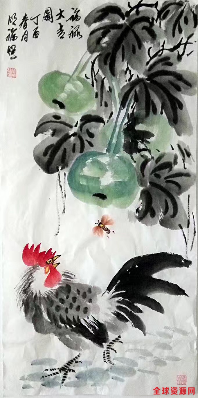 中南海国礼书画家张明福《福禄大吉》画作题写