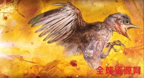 这只小鸟体型娇小,从吻部到尾巴末端约长6厘米。它曾生活在缅甸北部潮湿的热带环境中,不幸被柏类或南洋杉类针叶树所流下的树脂包裹,在漫长的地质年代中形成琥珀。它至今被保存得极为完好,约2厘米长的金黄色鸟足尤为醒目,上面的鳞片、丝状羽栩栩如生,还有很锋利的爪子。