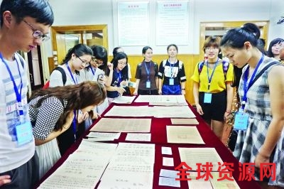 8日,大学生们参观武汉珍贵历史档案文献 龚敏 摄