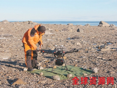 第三十三次南极考察队科考队员朱李忠在难言岛上利用旋翼无人机进行倾斜摄影测量。 |