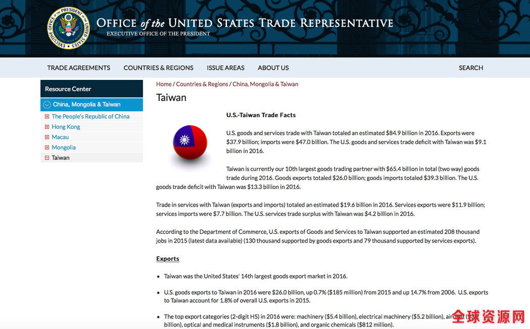 因为这个美国官方贸易部门,美国贸易代表署(USTR)官网上,台湾媒体见到了让他们甚为欣喜的“青天白日满地红旗”。