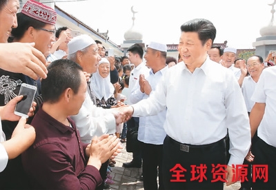 2016年7月19日上午,习近平在宁夏银川市永宁县闽宁镇原隆移民村,看望慰问移民群众。 |