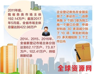 程序进一步简化:实施“先照后证”“多证合一”改革,电子营业执照试点单位将扩大到全省各级企业注册登记机关。工商登记前置审批事项由原来的226项减少到32项,企业登记审批由20多天缩短到3个工作日内,其中超85%当天办结。