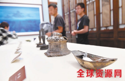 何刚捐赠给故宫的银錾刻船。金良快 摄 |