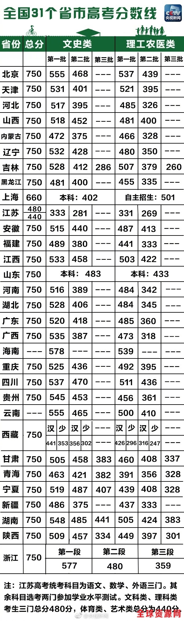 31个省区市已公布2017年高考各批次录取分数线。转给高考生们,你考得怎么样?
