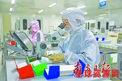 越亚封装是珠海唯一一家中以合资企业,也是中以两国间首批进行科技创新合作的企业之一。图为越亚封装基板检测车间。