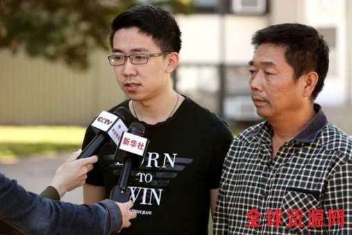 章莹颖的父亲章荣高(右)和章莹颖的男朋友侯霄霖(左)面对媒体发声。(新华社记者汪平摄)