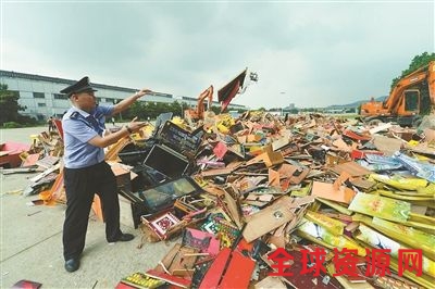 南京警方自3月份开展赌博机整治“雷霆行动”工作以来,共查处涉赌博机案件671起,查获涉赌人员969名,其中刑事拘留185名。图为7月3日,南京警方对收缴的2860余台赌博游戏机进行集中销毁。