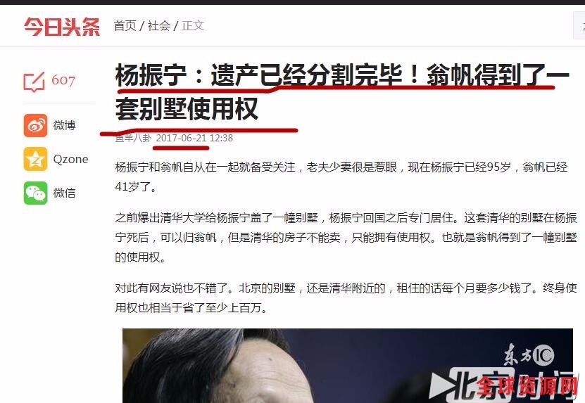 此外,名为“鱼羊八卦”的头条号早在6月21日就使用此为标题,但文章内容中并未提到“遗产已经分割完毕”。