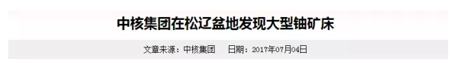 据报道,中核集团这次在松辽盆地地区取得重大突破,初步控制了一条砂岩铀矿带,总体长度超过10km,矿体厚度较大且稳定,平米铀量较高,有望发展成为大型铀矿床。