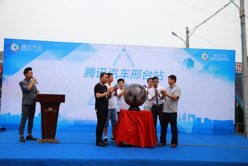 接下来,腾讯汽车领导、媒体代表、经销商代表上台,共同启动水晶球,预示着腾讯汽车河北运营中心邢台站正式上线。