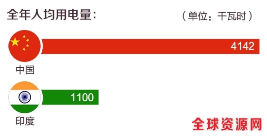虽然印度经济发展也很快,但无论是经济发展还是电力发展水平,都和中国还存在一定的差距。