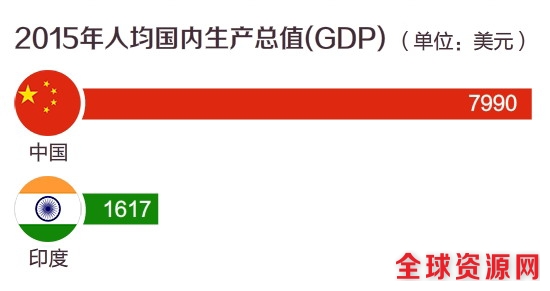 印度方面能查到比较准确的数据是2015年的,所以我们选取了中国2015年的数据来对比。
