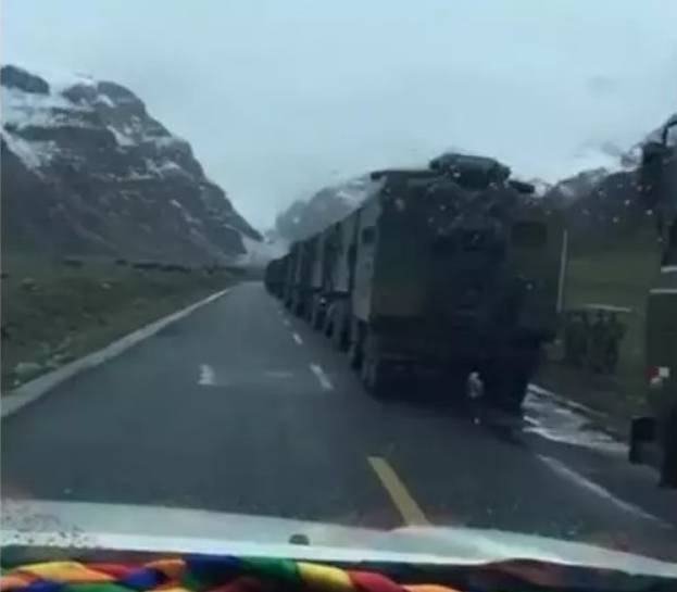 这两天中印边境也传出爆发性新闻。网友在青藏公路看到大批军车赶赴西藏前线。