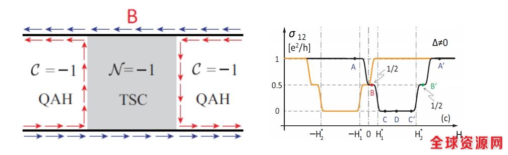 当把普通超导体置于反常量子霍尔效应薄膜之上时,临近效应使之能够实现手性Majorana 费米子,相应的实验中会多出全新的量子平台,对应½倍基本电阻单位e2/h。