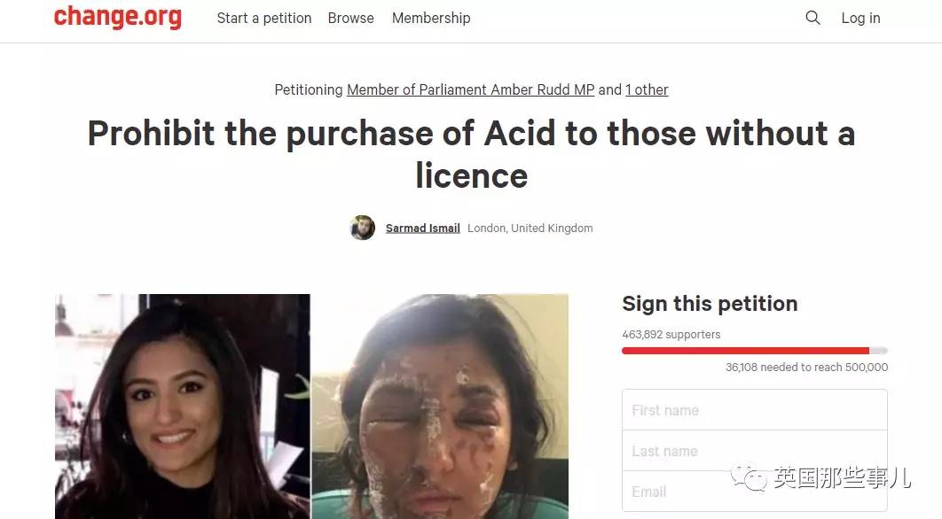 在受害人的呼吁下,惶惶不安,生怕自己哪天就被人泼了硫酸的英国民众在网上发起请愿,
