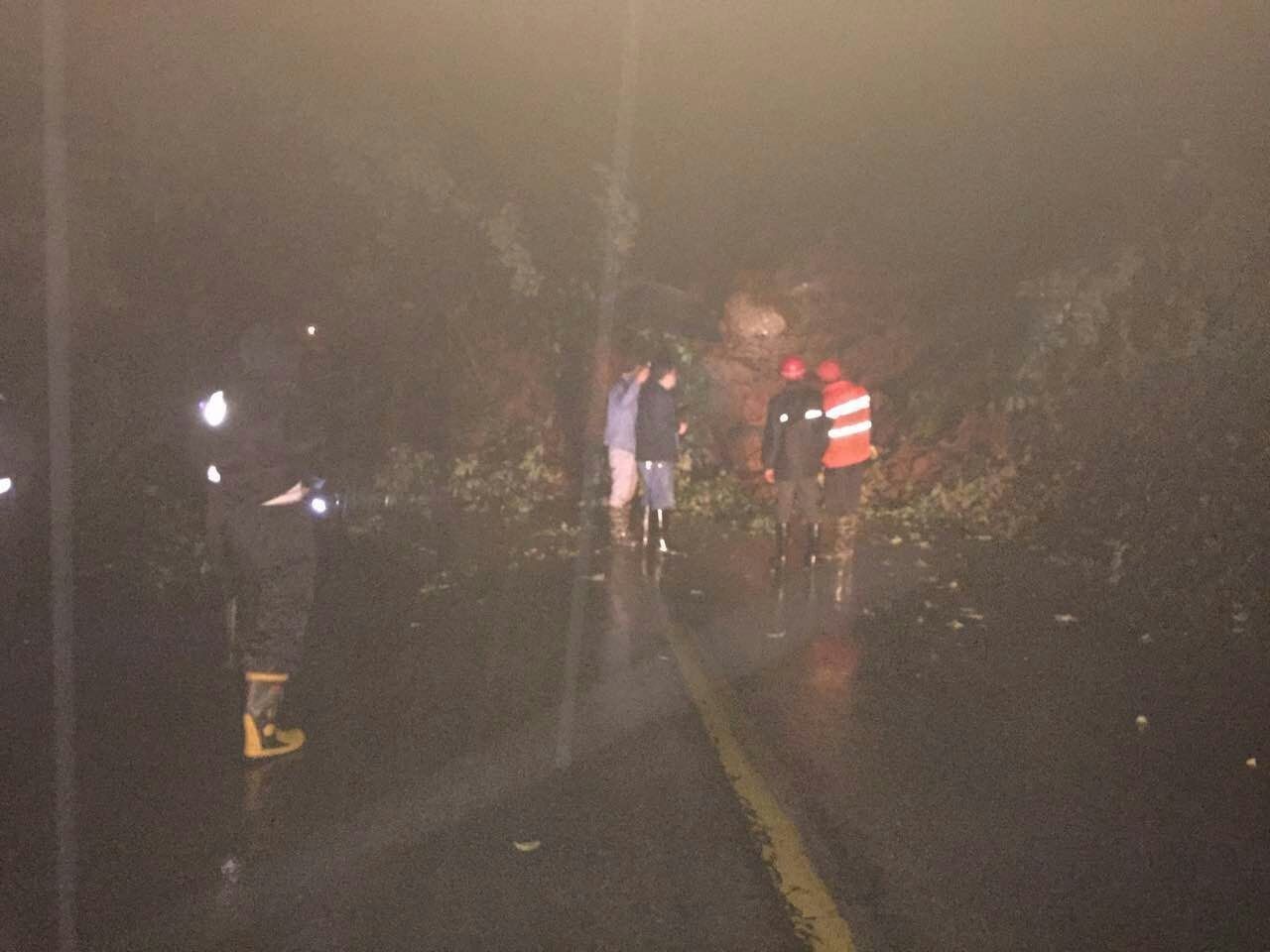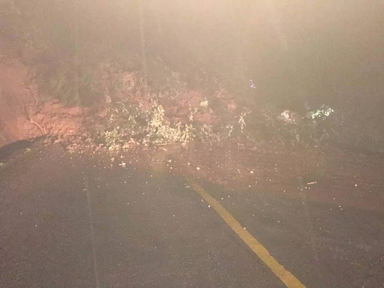 2017年7月24日。天气:雨。逢云鹤镇赶集日。7月23日20时25分许,老大丽路西邑段K92(小炉坪附近)处出现塌方,车辆无法通行,现在公安、交通及西邑镇领导及工作人员已赶往现场处置塌方。