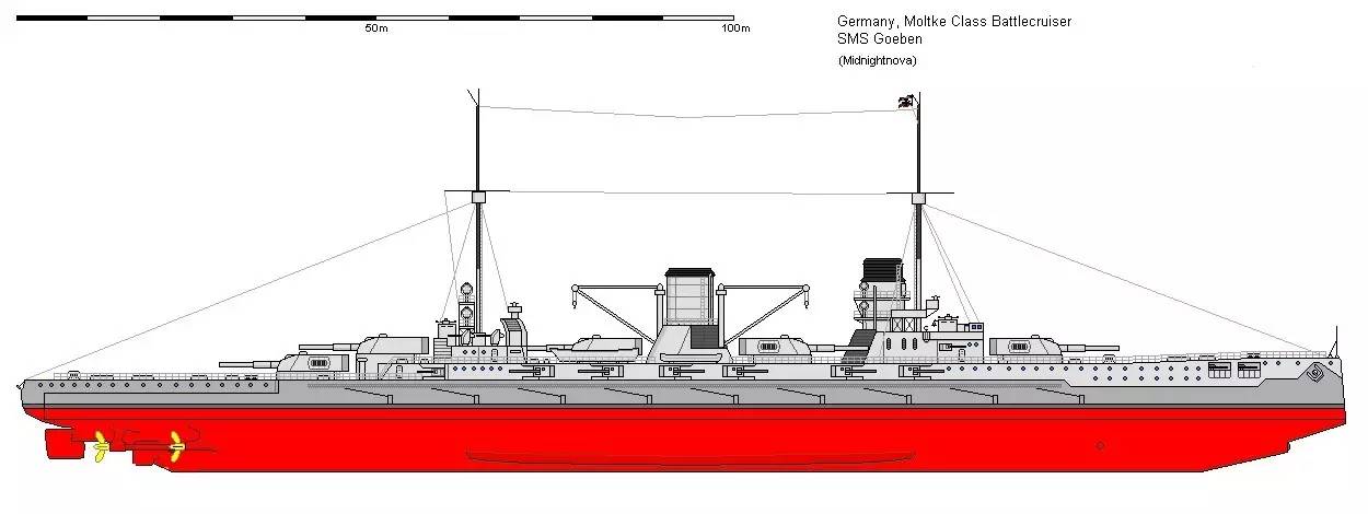 说起来那两条战舰也是一个传奇。尤其是戈本号,活过了两次世界大战,更是耗死了两个大帝国,而它还活着,一直到1954年才从土耳其海军退役,76年解体。戈本号是毛奇级战列巡洋舰的2号舰。该舰列入1909——1910年度造舰计划,是德国建造的第三艘战列巡洋舰。标准排水量22616吨,满载25300吨;配备当时最先进的动力系统、防保系统和火力系统。让苏丹一见倾心,再见倾国。当然这里面还有英国人使坏,本来土耳其向英国订购了一艘2.2万吨的军舰,钱都付清了,让土耳其受尽了委屈。结果呢,英国人不但不向当时的“西亚病夫”土耳其交付军舰,还直接自己用了,这就是后来的皇家海军爱尔兰号。当然英国欺负中国的时候更狠,直接把中国订购的军舰卖给了日本,导致中国甲午海战的惨败。这说明了战争中唯武器论是不对的,老祖宗说的“上兵伐谋”没有错。