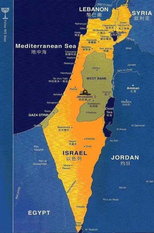 以色列地图像不像个长长的钉子插进阿拉伯的心脏