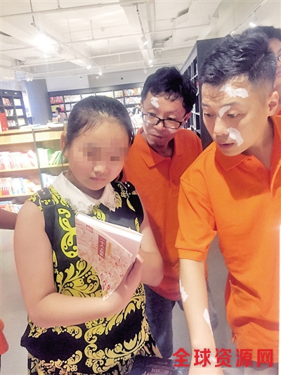 爱心人士陪小洁书店买书。