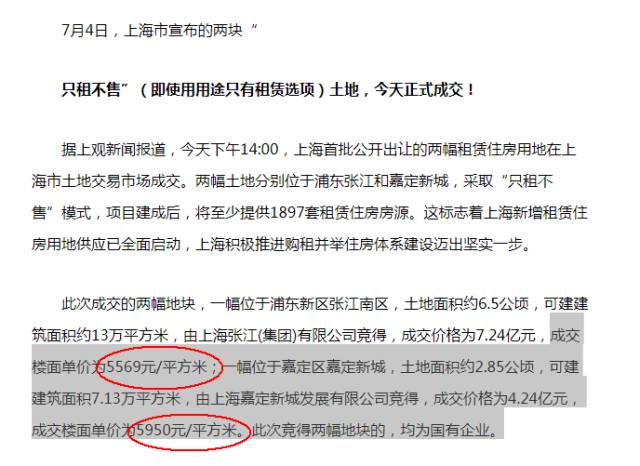 今天,上海的两块土地超低价出让,具有重大意义,标志着一个新时代的开始,是中国房地产发展的战略大转移,从此,中国从购房时代进入了长租房时代,房子是用来住的,不是用来炒的,第一次变得如此真实,愿普天之下百姓,人人安居,中国梦,也是住房梦,愿美梦成真!