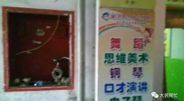 从视频及照片中可以看到,楼内消防设备已经损坏,消防栓的玻璃已被损坏,里面堆积了不少垃圾,还被贴上了很多小广告。看上去已经损坏很久。