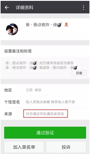 用这招的人多半是“图谋不轨”。为什么微信系统会在“来源”上显示“来自通讯录好友”呢?原来,你的手机号码已经被存在了别人的手机上,至于名称是什么并不重要。
