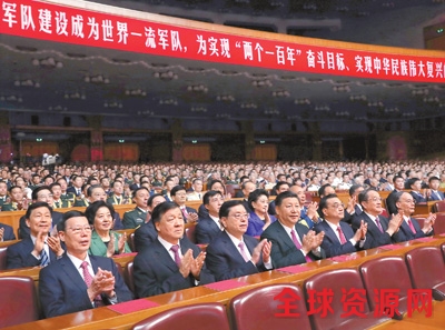 人民大会堂万人大礼堂庄严辉煌,二楼眺台悬挂着横幅:“紧密团结在以习近平同志为核心的党中央周围,不忘初心、继续前进,为实现党在新形势下的强军目标、把人民军队建设成为世界一流军队,为实现‘两个一百年’奋斗目标、实现中华民族伟大复兴的中国梦而努力奋斗!”舞台中央,绚烂的霞光映照着雄伟的长城,战士们高擎旗帜、奋力前行的群像栩栩如生。舞台两侧,挺拔的柱石托举起熠熠闪光的八一勋章,“1927—2017”的红色字样寓意着中国人民解放军90年栉风沐雨的历程。