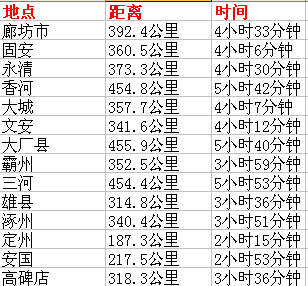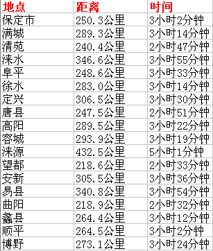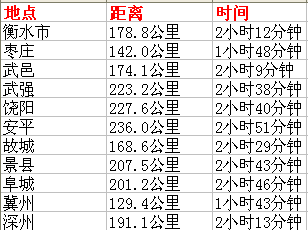 《邢台到河北各市县公里里程表》