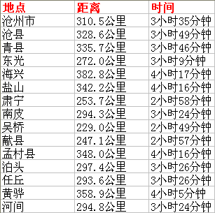 邢台至沧州各个县市距离