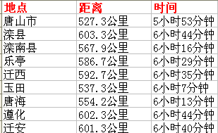 邢台至唐山各个县市距离