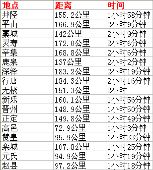 邢台至石家庄各个县市距离