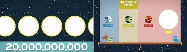 在银河系中,大约有200亿颗跟太阳相似的恒星。估算表明这些恒星中有五分之一处在宜居带的类地行星。宜居带就是恒星周围适合生命存在的轨道区域。