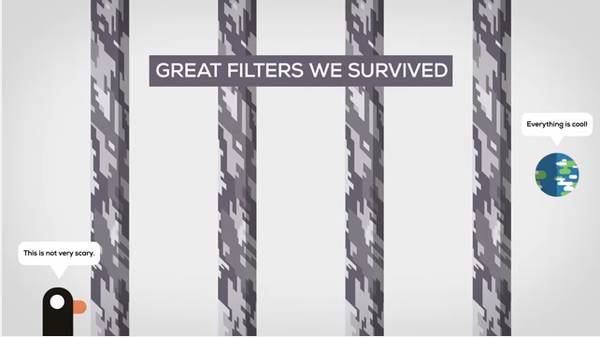 不过,我们有一些猜想。我们来聊聊大过滤(the great filter)吧。在这个语境中,过滤器指的是生命很难度过的障碍。在很多中情况下,它都显得都很可怕。