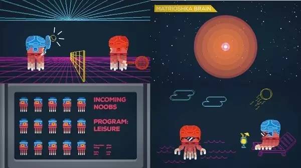 有可能比摧毁文明和建造帝国更为愉快的事情:一个有趣的概念就是Matrioshaka大脑。这是一个围绕恒星的巨大结构,而这种计算能力的电脑,可以让一个种族上传他们所有的意识和存在到模拟的宇宙。有可能,他们可以体验到永远纯粹的狂喜,没有出生或者悲伤,一个完美的人生。