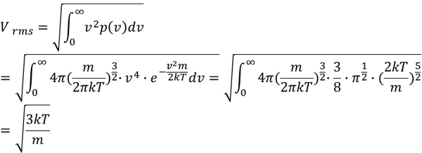 上式中,R是摩尔气体常数,Mm是气体的摩尔质量稍微变形一下,利用高斯积分和麦克斯韦速率分布律: