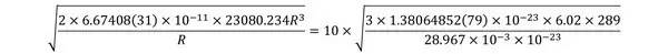 注意,这时候的m已经不是气体的摩尔质量了,而是气体中单个分子的质量,对于一颗行星,有一个逃逸速度: