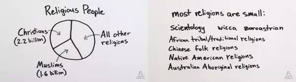有信仰的人是信仰信徒多于十亿人的宗教,但大部分宗教则只有少于一百万信徒: