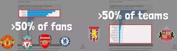 大部分英超球迷热爱有数亿拥簇的球队,比如红摸、利村、破厂和车子,但大部分球队则只有数百万支持者(比如今年的副班长阿斯顿维拉,保级万金油桑德兰):