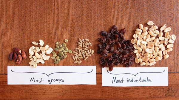 无论是宗教、球队支持者或者坚果成分,有多少个个体或者如何分组并不重要,
