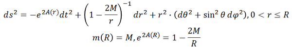 其中M和R分别是恒星的质量和半径,星内线元可以表示为:
