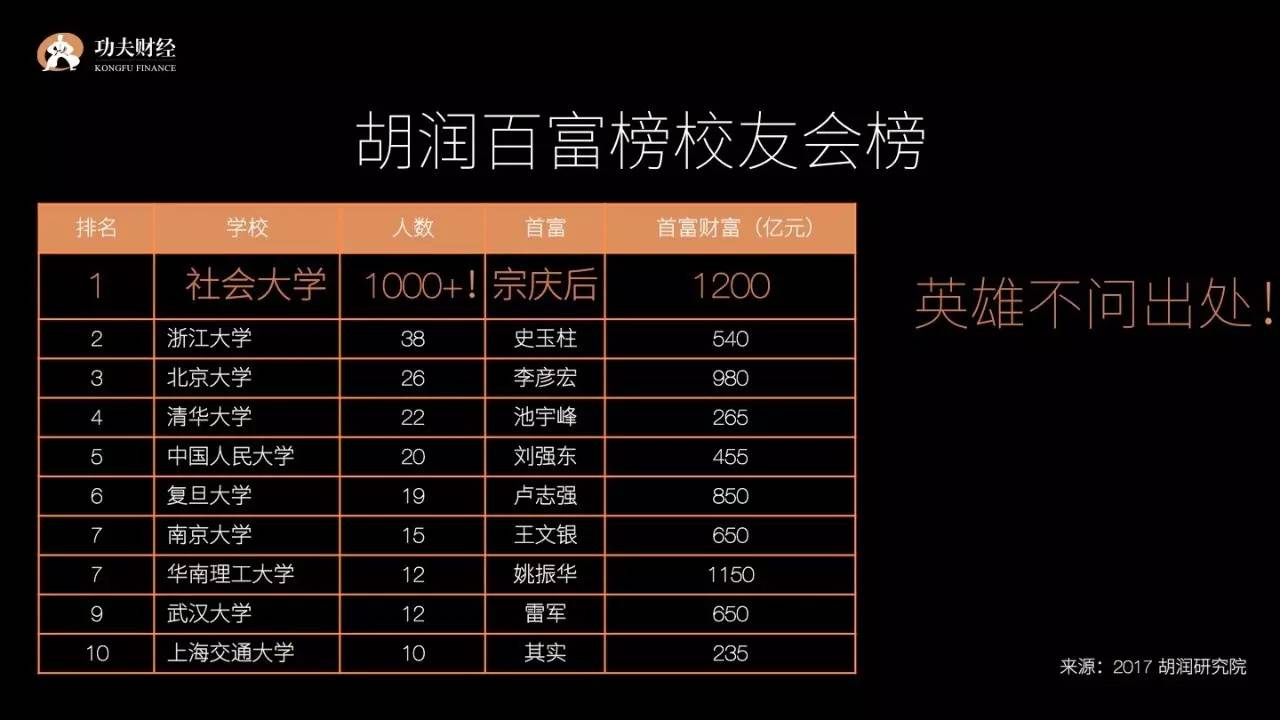 第三大趋势,中国的创业家精神普遍存在于社会各阶层中。我最初认为很多成功的中国企业家是来自中国的各个名校。为此,我还做过一个排名,列出了中国最成功的企业家都是来自于哪所学校。排名第10的是上海交大、第5是人民大学、清华和北大分列第4和第3名,而排名第1的则是社会大学。社会大学是中国绝对的第一名校,已经有1000多个上榜者来自于社会大学。我从中明白了,英雄不问出处的道理。