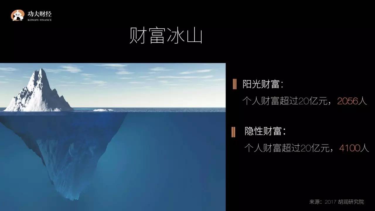 我相信很多人听说过“财富冰山”的概念,就是我们看到的财富仅是一小部分。个人的隐性财富要远远大于阳光财富。我们富豪榜的门槛是20亿,从2016年的数据来看,中国第一次超过美国成为亿万富翁最多的国家,这也是为什么我今天选择这个主题的原因。