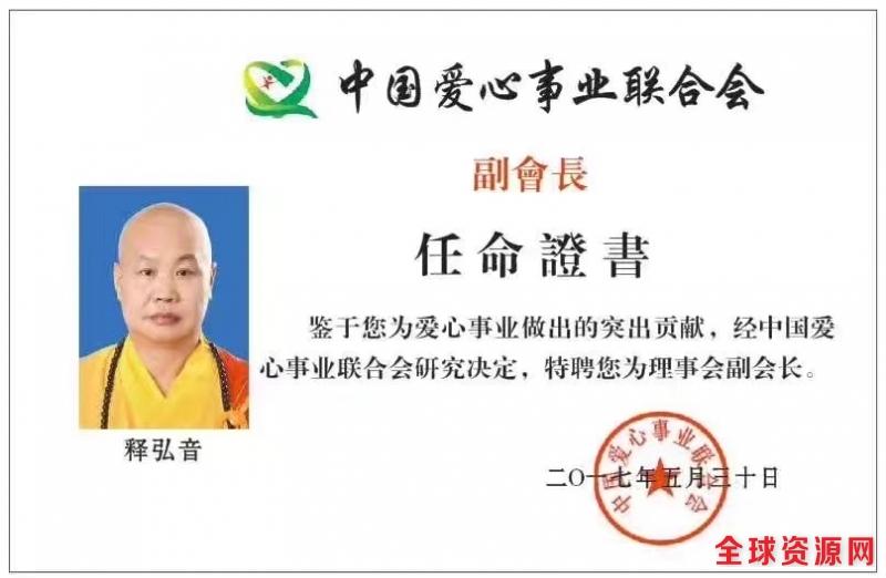 恩师释弘音法师 简 历 释弘音法师,浙江省台州人,生于1955年7月,1995年出家,同年到浙江新昌大佛寺拜上悟下道长老为师剃度; 2005年,在湖北荆州章华寺授大戒;上弘下音法师是天台宗第四十六代传人,禅宗一一沩仰宗第十代传人;临济宗第四十四代传人;净土宗第十五代弟子;释迦族第三十三代弟子。浙江省大仁寺住持、台洲市宝相寺常住,台州市临海平岗寺常住,上弘下音法师现任中亚佛教协会常务副会长,中华慈孝总会副会长;中国爱心事业联合会副会长。 2014年12月为首席中国佛教大师称号兼大师协会副会长; 2015年1月为香港高等教育研究生院佛学教授(客座); 2014年6月为中国佛学会主席团副主席; 2015年1月为《佛教中国》杂志社顾问; 2015年1月为中国国家环境保护发展研究中心全国环境保护代言人; 2015年3月为佛教文化形象大使;2016年6月为上海世界非遗文化城管委会副会长。 2015年3月担任世界文物委员会执行局第一届常委; 2014年7月为现任中国舍利文化研究协会常务副会长,中国传统文化佛学会会长,河北省秦皇岛五峰寺常住,秦皇岛五峰寺宗教养老实践基地负责人。2011年受天台县统战部邀请参加天台宗智者大师电视记录片的拍摄,并扮演了智者大师。爱国爱教,弘法利生。 释弘音法师热心慈善事业,积极从事扶贫帮困工作。 2017年3月,全国首个宗教养老实践基地落户秦皇岛五峰寺。建设宗教养老实践基地是国家应对老龄化社会僧人养老难问题的重大举措,体现了党和国家对宗教文化事业和僧人养老工作的重视,表达了全社会对老年僧人的体贴和关心。 2017 年5月1号释弘音法师参加全国人大会议中心举办的;中国国际报告文学研究会,和北京中外领英环球文化传媒中心表彰大会。宗教领域劳动成果获得社会。并获得荣誉证书、奖杯,奖章在宗教领域劳动成果获得社会确认。 2017年4月12日释弘音法师已经登上《瞭望中国》杂志报,是中国宗教历史以来首届出家人登上杂志报, 创办全国首个宗教养老实践基地,成功落户河北省秦皇岛市五峰寺。 2017年6月兹聘释弘音法师中国食文化研究会健康生态委员会高级顾问。 2017年7月1号参加庆祝香港回归二十周年,并荣获奖章,奖杯誉证书等社会各界确 认。 2017年8月1日,释弘音法师代表佛教顾问兼名誉主席团主席去江西南昌参加《八一》建军节,纪念老红军革命历史,并荣获奖章、奖杯荣誉证书等,获得社会各界确认。