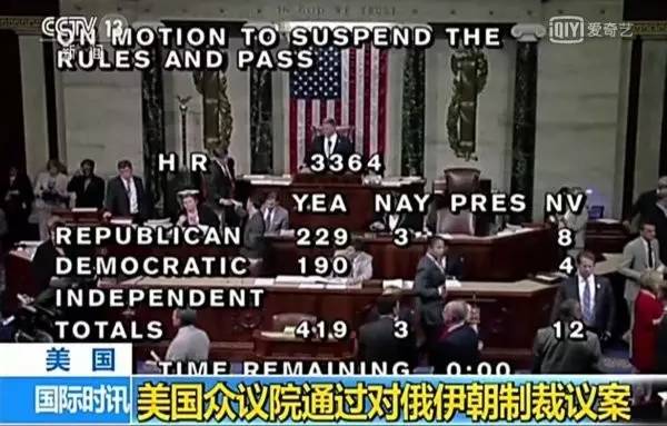 7月25日,美国参议院通过对俄罗斯、伊朗、朝鲜制裁法案。