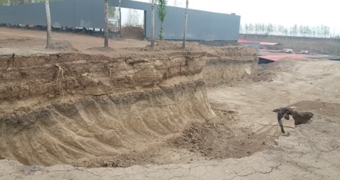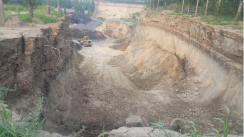 摘要:多年来,为节约土地,国家大力推行禁实(实心粘土砖)工作,要求砖窑厂必须经过批准才能生产,且不得使用粘土作为主要的生产原料,不得露天堆放煤矸石。近日在河北省任县了解到,该县于盟庄砖窑场以土地是自己买的50亩工业用地为由、疯狂破坏耕地等违法情况严重。由于取土太深,形成几十米深的大水坑,造成了严重地质灾害隐患。7月,在任县天口乡于盟庄村南,远远就看到这座砖窑场四周被杨树围住,厂区建在一个坑里,规模很小,设备也极其简陋,几处彩钢顶棚胡乱搭建的简易板房,砖窑的场地上露天堆放着大量已经烧制好的粘土实心砖。几名工人正在用小推车把烧制好的砖倒到空地上。几辆拖拉机进进出出进行运砖。一辆推土机在不断的把新挖掘的土堆到一起。从外表上不难看出,这是一家典型的小散乱污企业。任县于盟庄村砖场煤矸石堆、土堆露天存放没有任何防尘措施。5月份于盟庄村砖场取土现场,地面高度和厂房还一般高。取土深度达有四、五米。7 月份于盟庄砖窑场取土现场,取土深度已交达到十几米在取土现场,看到平坦的土地上突兀地出现许多长达百余米,宽 20多米的大坑。坑底与周围耕地形成十几米的落差,举目望去,四周没有一棵庄稼。挖掘机在肆无忌惮地挖掘耕地,铲钩印记清晰可见,露出的泥土还是新的, 而且面积在不断扩大,取土深度越来越深。一些地方挖土机隐藏在土坑内,准备夜里进行挖掘。而大坑不远处就是多家砖场。有的大坑深度竟达十几米,耕地一经破坏,很难恢复于盟庄砖窑场疯狂取土一直向下挖,有的地方就挖出水来了。雨季这深坑里全都是水,这里渐渐成了一个几十米深的堰塞湖,一旦发生滑坡后果不堪设想,最严重的安全隐患问题,砖场取土留下的,坑坡陡峭,里面暗流涌动,水最深的地方有五六米,危险系数很大,而且还没有设置警示标牌,该砖窑厂负责人奇葩的回答,这是我专门用来养鱼的。对任县于盟庄砖窑厂疯狂取土烧制实心砖的情况,该砖窑厂负责人表示:我们手续齐全,土地是我们买的 50 亩工业用地。对此事我们将持续关注